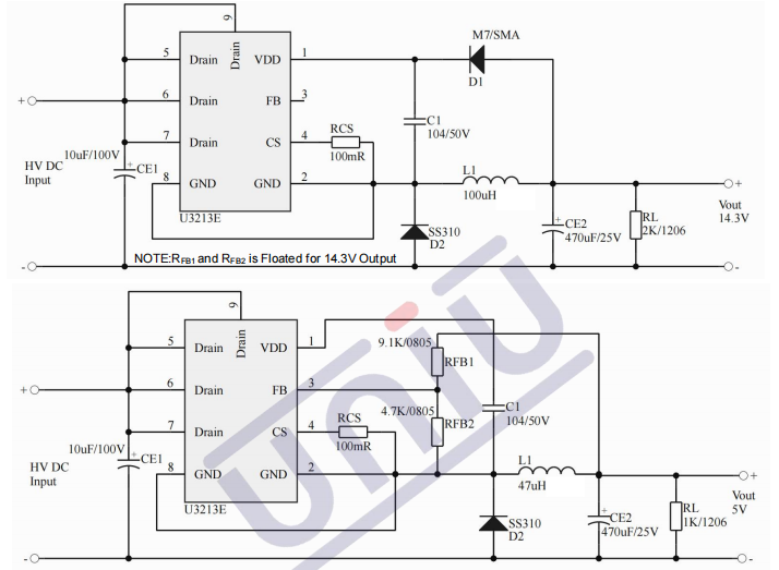 •產(chǎn)品描述:U3213E是一款高性能低成本PWM控制功率器,適用于離線式小功率降壓型應(yīng)用場合,外圍電路簡單、器件個數(shù)少。同時產(chǎn)品啟動模塊內(nèi)置高耐壓MOSFET可提高系統(tǒng)浪涌耐受能力。與傳統(tǒng)的PWM功率開關(guān)不同,U3213E內(nèi)部無固定時鐘驅(qū)動MOSFET,系統(tǒng)開關(guān)頻率隨負(fù)載變化可實現(xiàn)自動調(diào)節(jié)。同時芯片采用了多模式PWM控制技術(shù),有效簡化了外圍電路設(shè)計,提升線性調(diào)整率和負(fù)載調(diào)整率并消除系統(tǒng)工作中的可聞噪音。此外,芯片內(nèi)部峰值電流檢測閾值可跟隨實際負(fù)載情況自動調(diào)節(jié),可以有效降低空載情況下的待機功耗。U3213E集成有完備的帶自恢復(fù)功能的保護功能:VDD欠壓保護、逐周期電流限制、輸出過壓保護、過熱保護、過載保護和VDD過壓保護等。