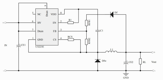 •產(chǎn)品描述:U3223E是一款高性能低成本PWM控制功率器,適用于離線式小功率降壓型應(yīng)用場(chǎng)合,外圍電路簡(jiǎn)單、器件個(gè)數(shù)少。同時(shí)產(chǎn)品內(nèi)置高耐壓MOSFET可提高系統(tǒng)浪涌耐受能力。與傳統(tǒng)的PWM控制器不同,U3223E內(nèi)部無固定時(shí)鐘驅(qū)動(dòng)MOSFET,系統(tǒng)開關(guān)頻率隨負(fù)載(輕載、重載)變化可實(shí)現(xiàn)自動(dòng)調(diào)節(jié)。同時(shí)芯片采用了多模式PWM控制技術(shù),有效簡(jiǎn)化了外圍電路設(shè)計(jì),提升線性調(diào)整率和負(fù)載調(diào)整率并消除系統(tǒng)工作中的可聞噪音。此外,芯片內(nèi)部峰值電流檢測(cè)閾值可跟隨實(shí)際負(fù)載情況自動(dòng)調(diào)節(jié),可以有效降低空載情況下的待機(jī)功耗。U3223E集成有完備的帶自恢復(fù)功能的保護(hù)功能:VDD欠壓保護(hù)、逐周期電流限制、輸出過壓保護(hù)、過熱保護(hù)、過載保護(hù)和VDD過壓保護(hù)等。