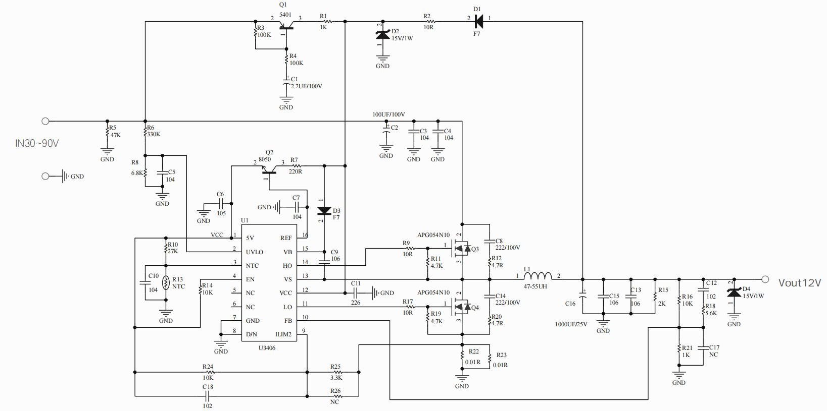 •產(chǎn)品描述:U3406 400V同步降壓控制器通過高輸入電壓源或高壓瞬變輸入軌進(jìn)行調(diào)節(jié),最大限度地減少了對外部浪涌抑制組件的需求。高側(cè)開關(guān)最小導(dǎo)通時間為60 ns,具有較大的降壓比,可實現(xiàn)從100V標(biāo)稱輸入到低壓軌的直接降壓轉(zhuǎn)換,從而降低系統(tǒng)復(fù)雜性和解決方案成本。U3406在輸入電壓低至8.5V的情況下繼續(xù)工作,如果需要,可以接近100%的占空比,使其成為高性能100V電池汽車應(yīng)用,ADAS(環(huán)視ECU)和HEV/EV系統(tǒng)的絕佳選擇。強(qiáng)制pwm (FPWM)操作消除了開關(guān)頻率變化,以最大限度地減少EMI,而用戶可選擇的二極管仿真降低了輕負(fù)載條件下的電流消耗。測量低側(cè)MOSFET的壓降或使用可選的電流檢測電阻提供逐周期過流保護(hù)??烧{(diào)開關(guān)頻率高達(dá)0.5MHz,可以同步到外部時鐘源,以消除噪聲敏感應(yīng)用中的拍頻。