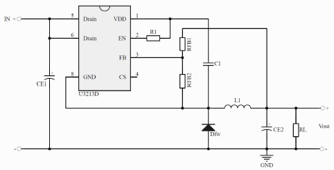 •產(chǎn)品描述:U3213D是一款高性能低成本PWM控制功率器,適用于離線式小功率降壓型應(yīng)用場(chǎng)合,外圍電路簡(jiǎn)單、器件個(gè)數(shù)少。同時(shí)產(chǎn)品內(nèi)置高耐壓MOSFET可提高系統(tǒng)浪涌耐受能力。與傳統(tǒng)的PWM控制器不同,U3213D內(nèi)部無固定時(shí)鐘驅(qū)動(dòng)MOSFET,系統(tǒng)開關(guān)頻率隨負(fù)載(輕載、重載)變化可實(shí)現(xiàn)自動(dòng)調(diào)節(jié)。同時(shí)芯片采用了多模式PWM控制技術(shù),有效簡(jiǎn)化了外圍電路設(shè)計(jì),提升線性調(diào)整率和負(fù)載調(diào)整率并消除系統(tǒng)工作中的可聞噪音。此外,芯片內(nèi)部峰值電流檢測(cè)閾值可跟隨實(shí)際負(fù)載情況自動(dòng)調(diào)節(jié),可以有效降低空載情況下的待機(jī)功耗。U3213D集成有完備的帶自恢復(fù)功能的保護(hù)功能:VDD欠壓保護(hù)、逐周期電流限制、輸出過壓保護(hù)、過熱保護(hù)、過載保護(hù)和VDD過壓保護(hù)等。