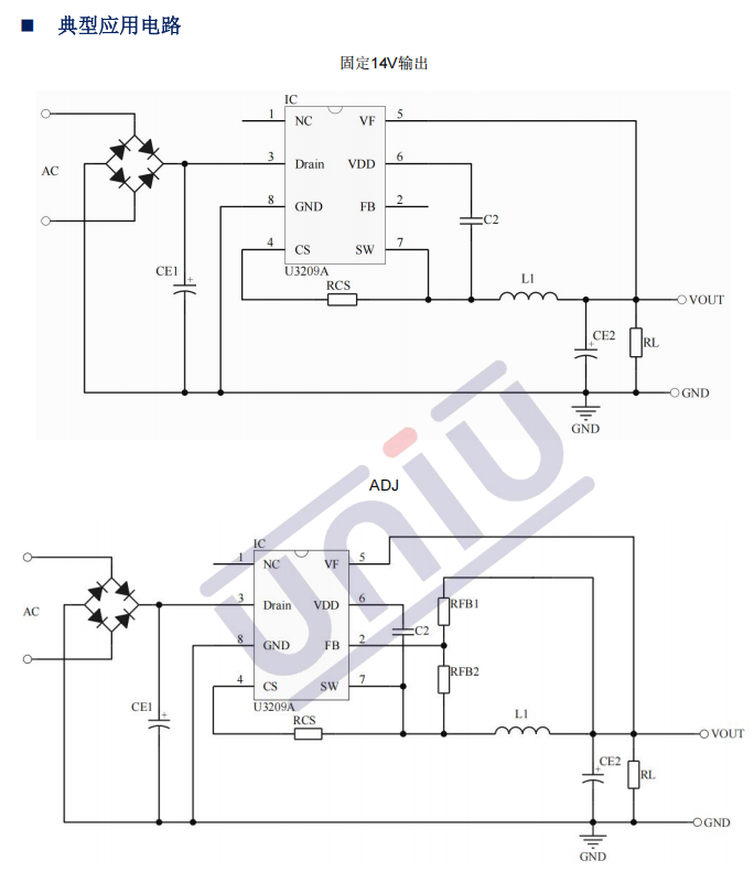 集成12Ω,500V MOS; 集成 500V 高壓啟動電路 ; 集成續(xù)流二極管;多模式控制、無異音工作 ;支持降壓和升降壓拓?fù)?/span>; 默認(rèn) 14V 輸出( FB 腳懸空);待機(jī)功耗低于 50mW;良好的線性調(diào)整率和負(fù)載調(diào)整率;集成軟啟動電路 ;內(nèi)部保護(hù)功能 : 過載保護(hù) (OLP) ;逐周期電流限制 (OCP) ; 輸出過壓保護(hù) (OVP); VDD 過壓、欠壓和電壓箝位保護(hù)