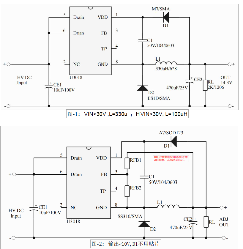 •主要特點(diǎn):VIN: 18~180V(OUT: 14.3V);集成 2.5A 180V MOS;集成 200V 高壓?jiǎn)?dòng)電路;多模式控制、無(wú)異音工作;支持降壓和升降壓拓?fù)?默認(rèn)14.3V 輸出;待機(jī)功耗低于 50mw;良好的線性調(diào)整率和負(fù)載調(diào)整率;集成軟啟動(dòng)電路;內(nèi)部保護(hù)功能:過(guò)載保護(hù)(OLP);逐周期電流限制(OCP);輸出過(guò)壓保護(hù)(OVP);VDD 過(guò)壓、欠壓和電壓箱位保護(hù)